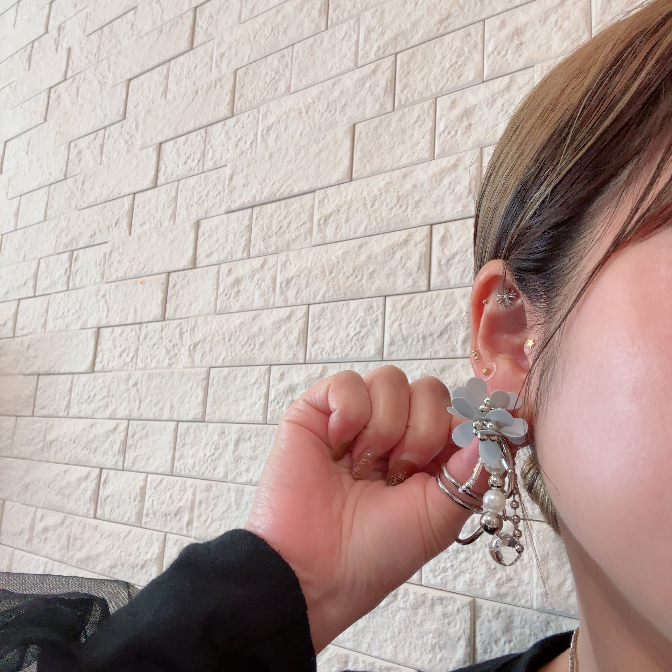 gray flower volume pierce