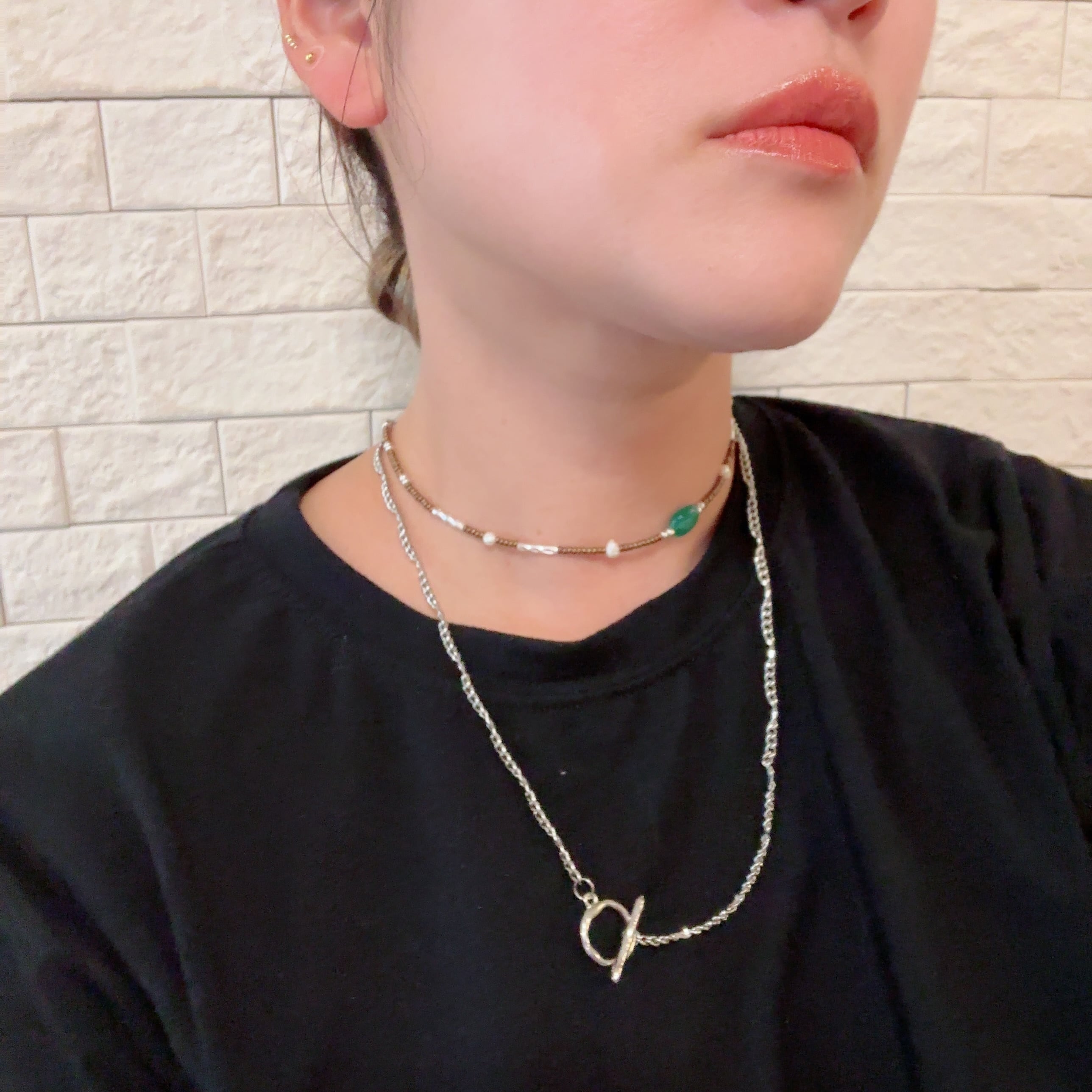 ビーズとグリーンの綺麗なストーンで使ったネックレスです!