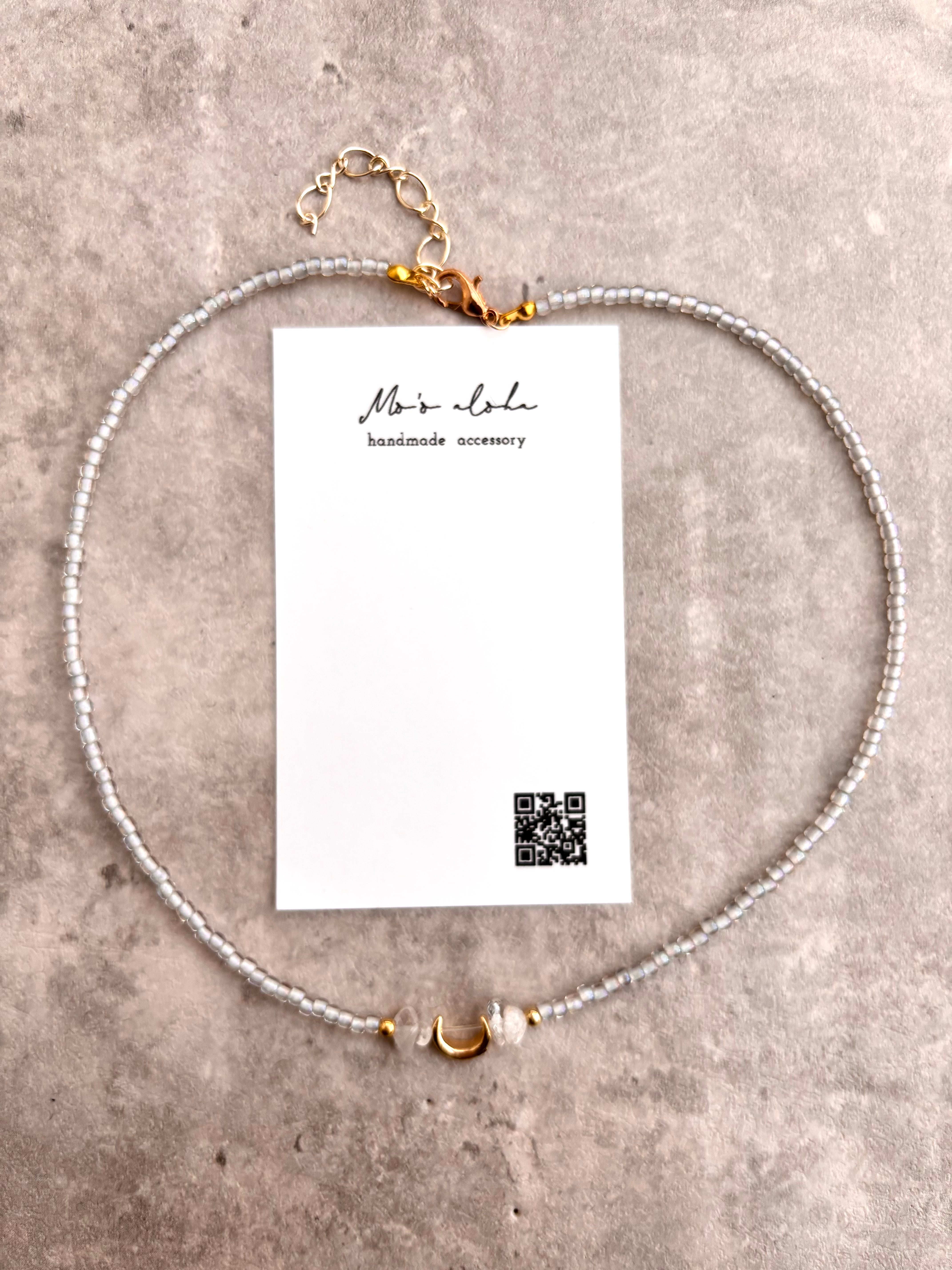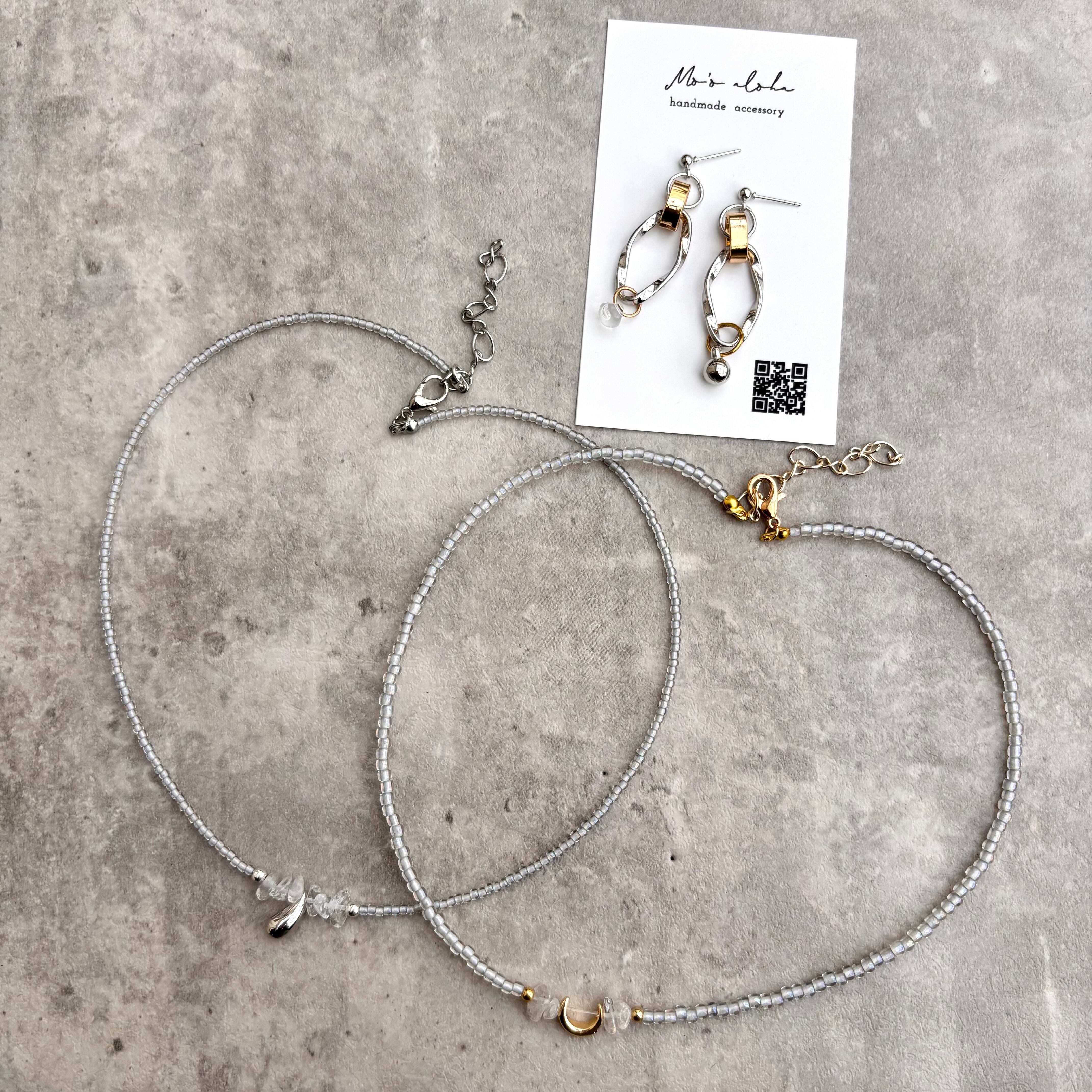 天然石の水晶ときらめくビーズを使った上品なハンドメイドアクセサリーです