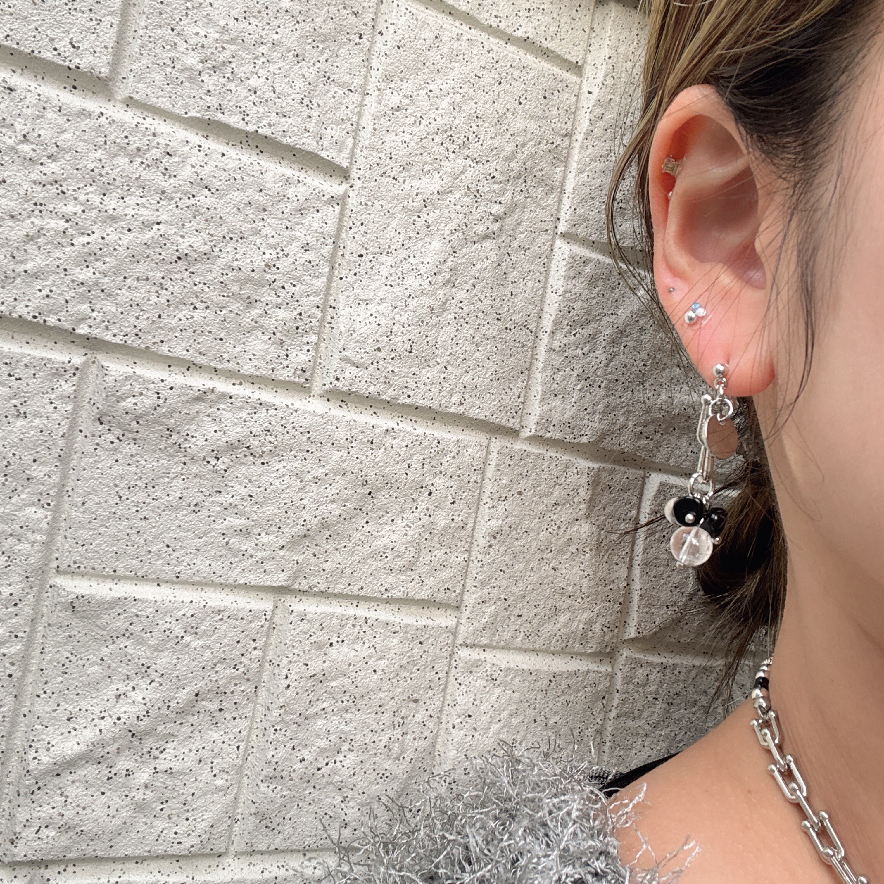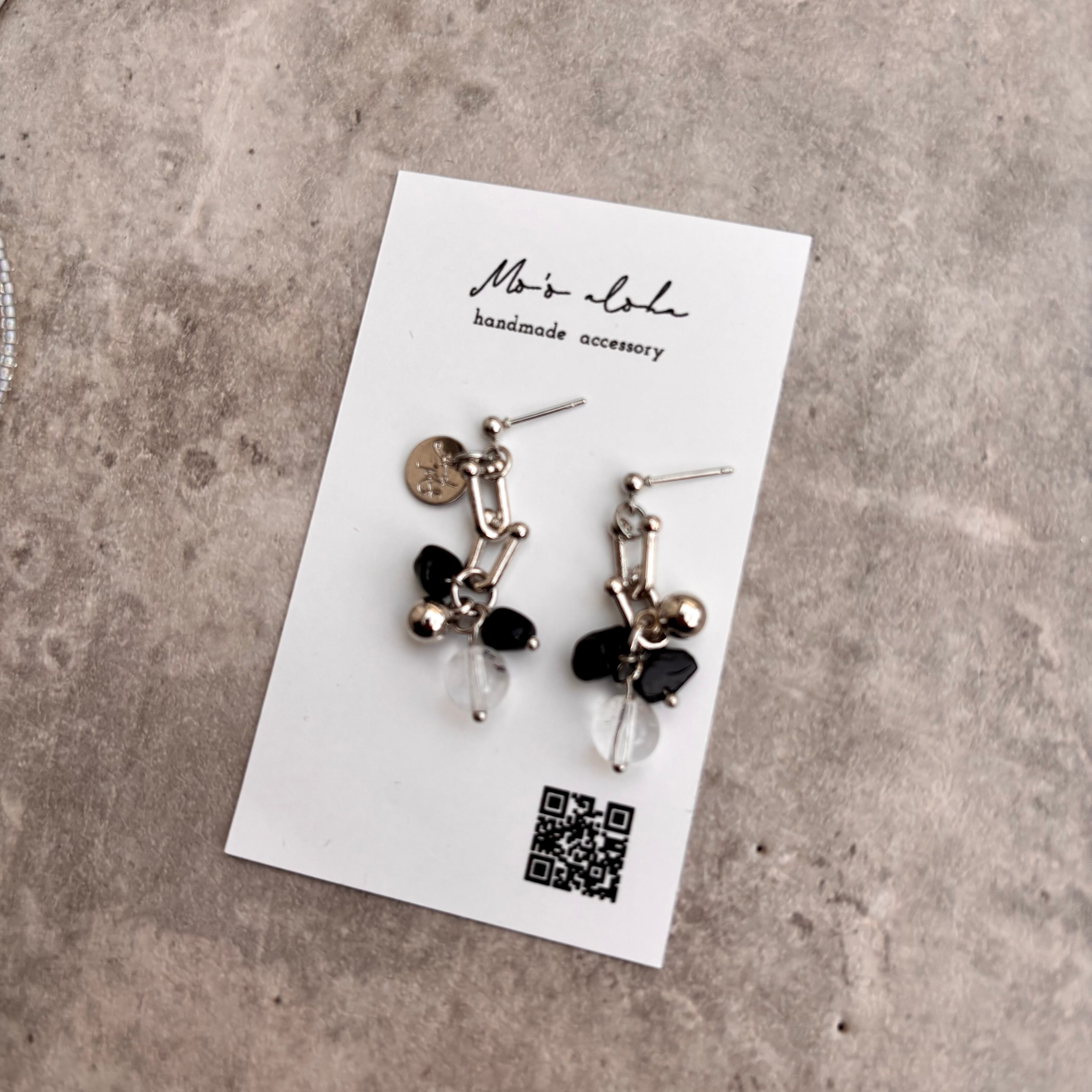 天然石のオニキス、水晶やCCBビーズを使ったピアスです。