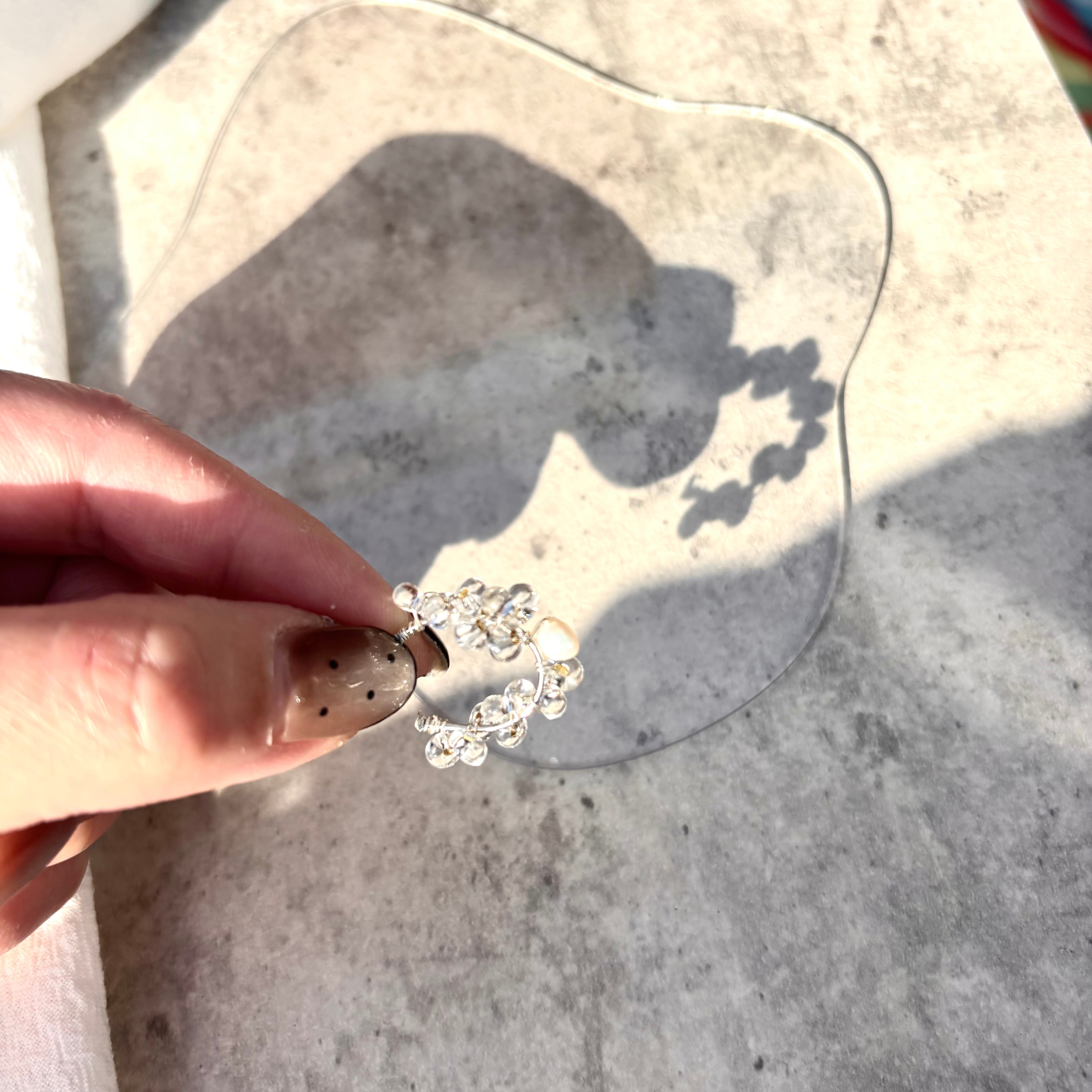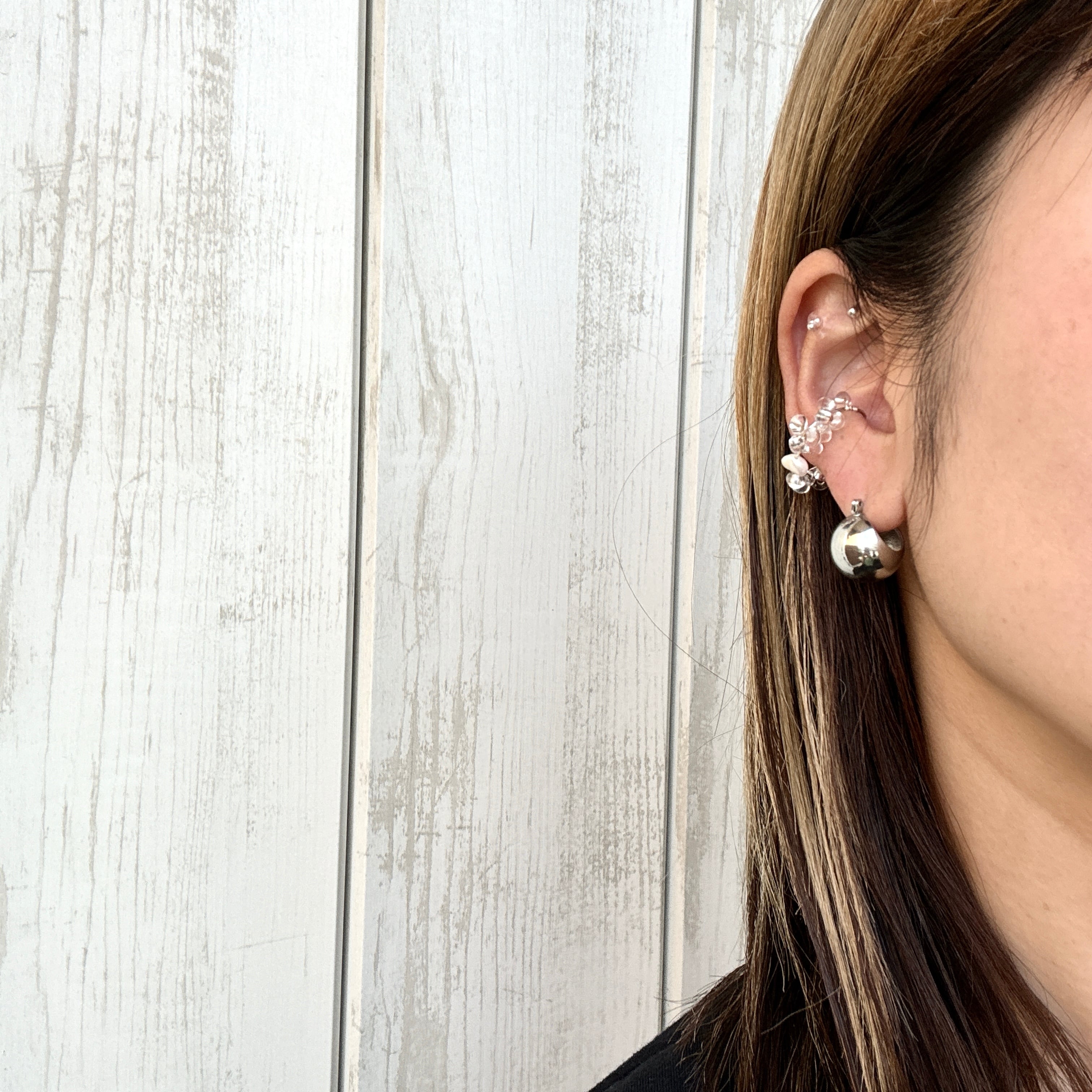 クリアビーズとシェルでデザインした春夏を感じるイヤーカフです。