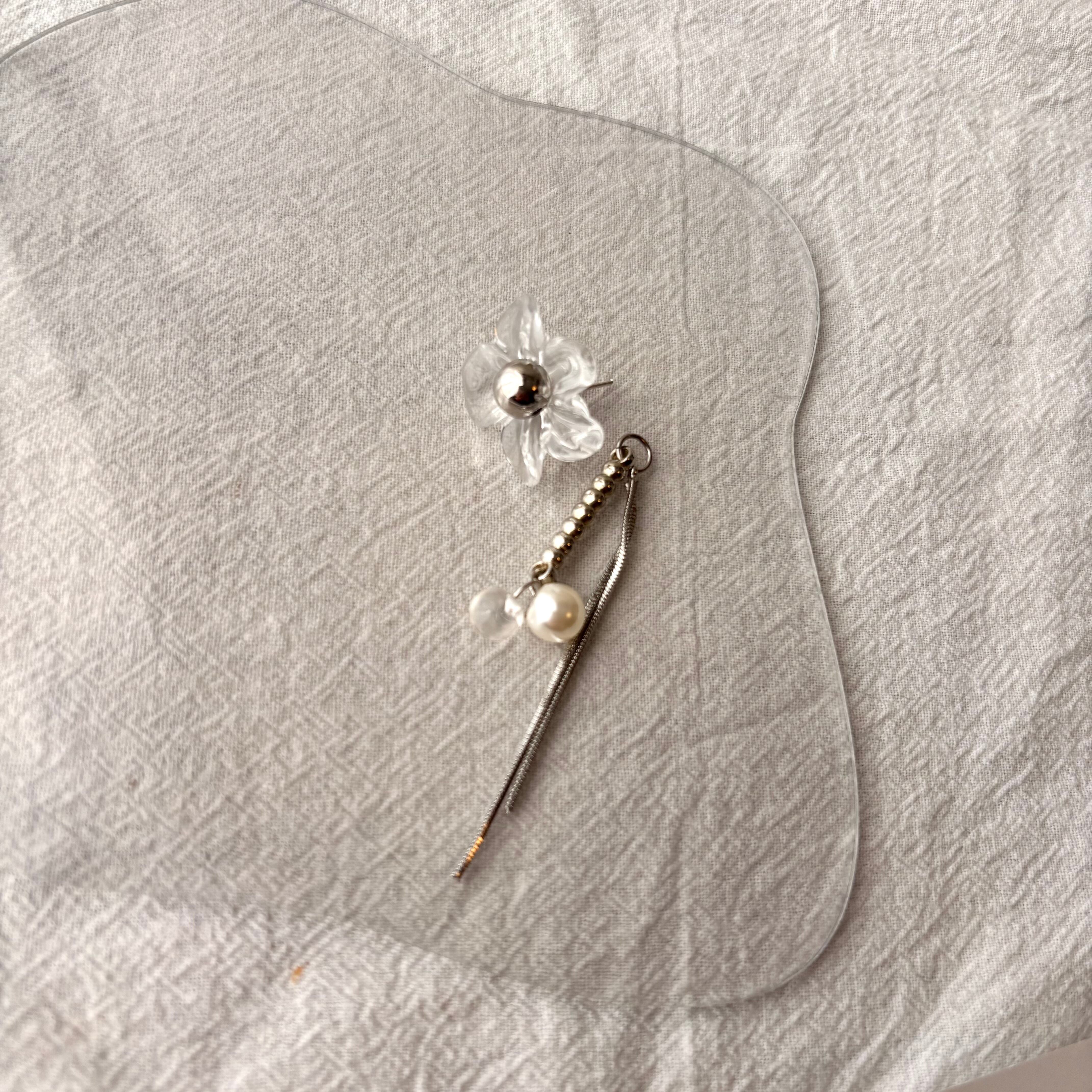 #ハンドメイドアクセサリー #春アクセサリー #フラワーピアス #クリアアクセサリー #パールピアス