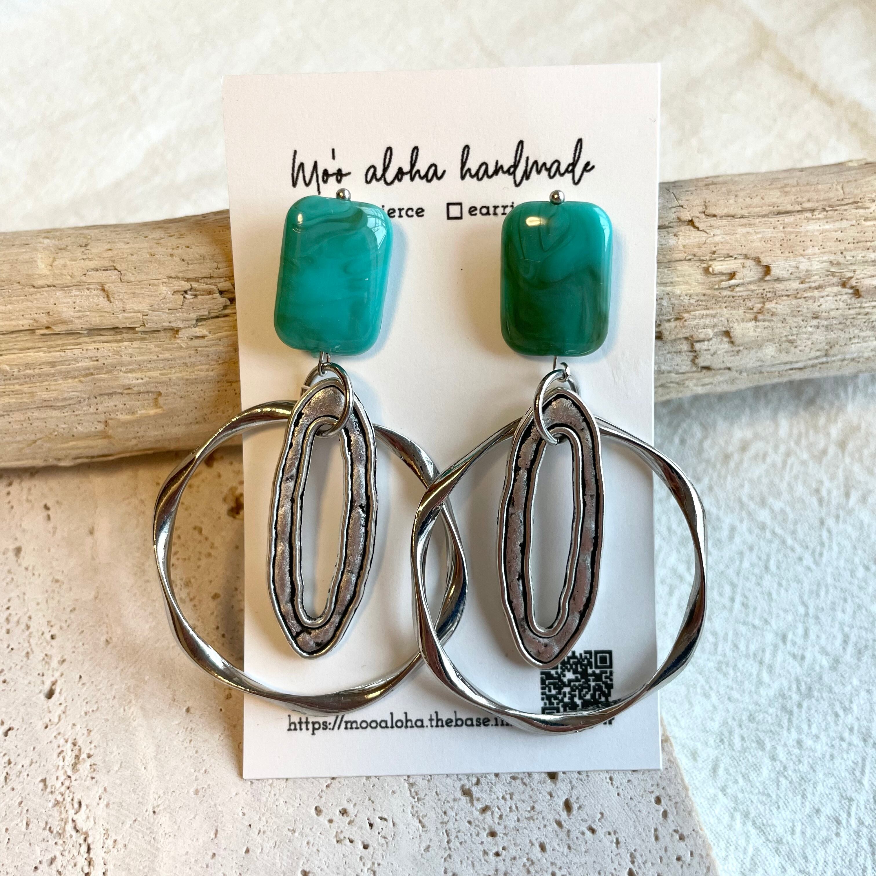 ターコイズとシルバーのヴィンテージ風のピアスです(o^^o)