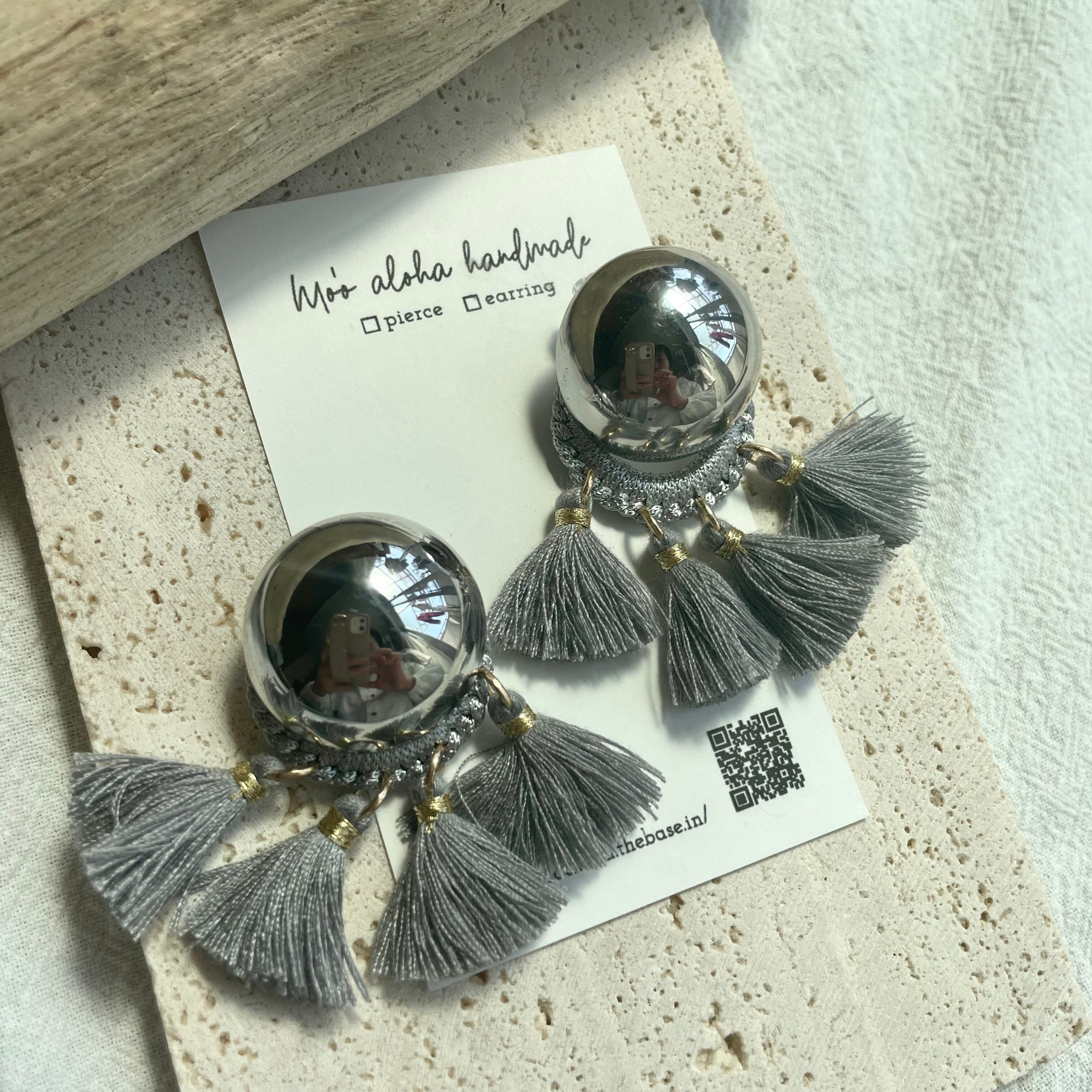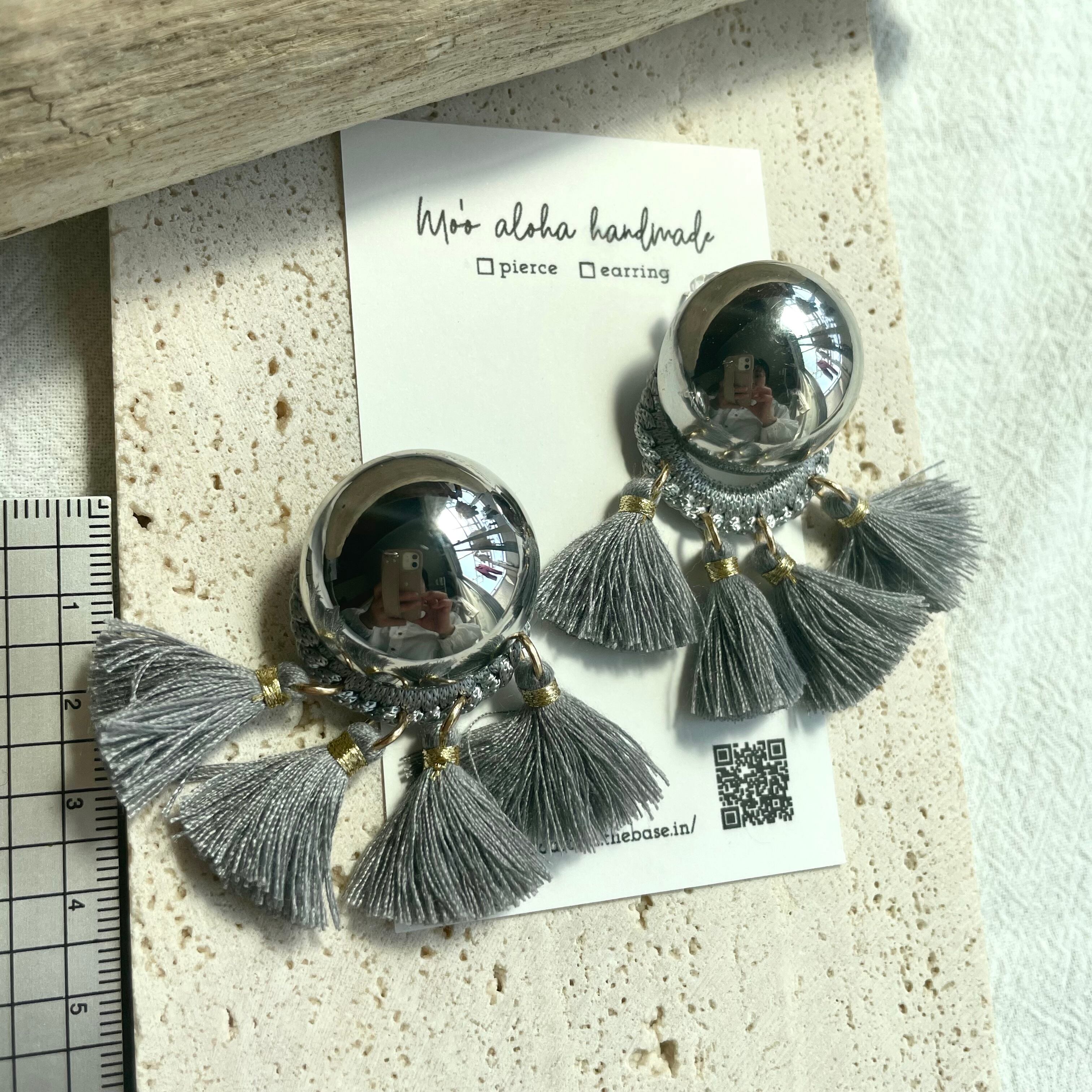 シルバーのカボションにフリンジデザインがとってもお洒落!これからの季節に大活躍するフリンジピアスです♡