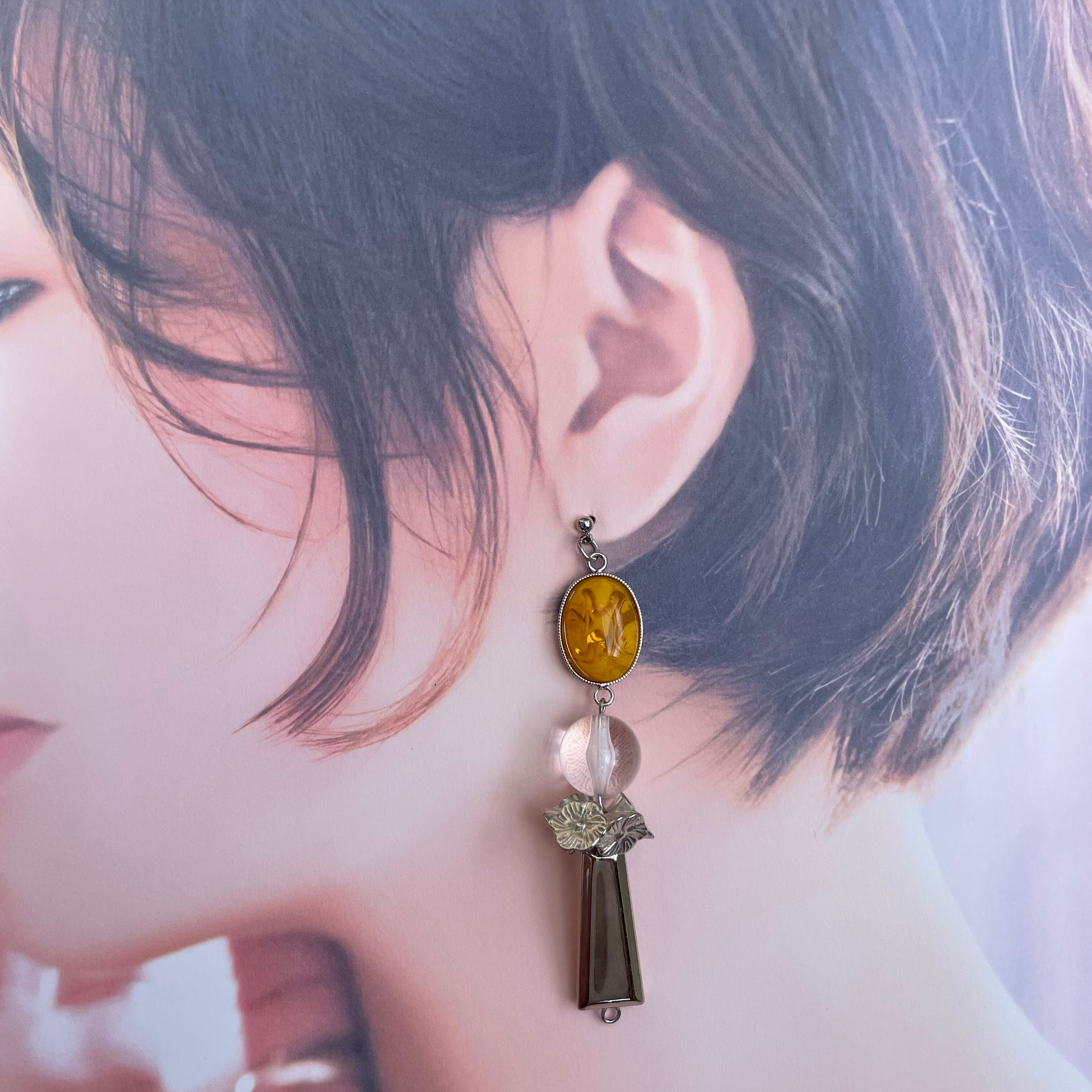 シルバーイエローでおしゃれで存在感大のピアスです♡
